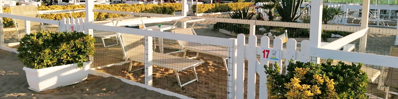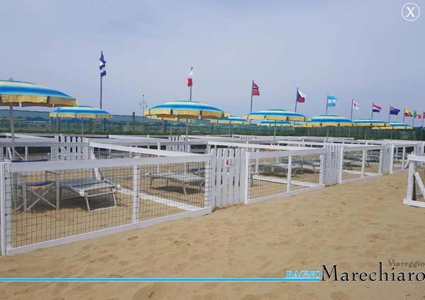 di ombrelloni, lettini, acqua, ciotole, ecc.. dove ogni